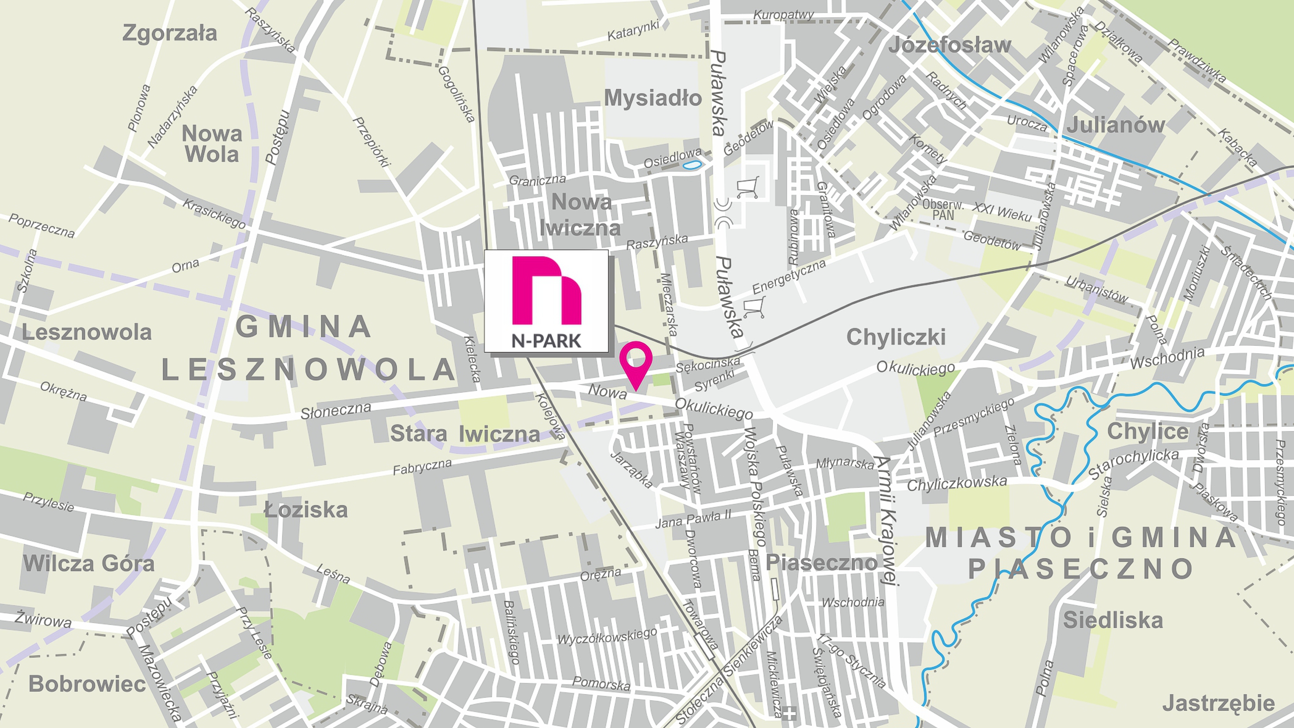 N-Park w aglomeracji warszawskiej powstał w gminie Lesznowola, na granicy Starej Iwicznej i Piaseczna, tuż przy drodze wojewódzkiej nr 721, którą codziennie porusza się ok. 18 000 samochodów. Analiza stref oddziaływania inwestycji wskazuje, że w odległości do 10 minut drogi od inwestycji mieszka ok. 43 000 osób, a kolejne 42 000 - w odległości od 10 do 20 minut. Obiekt handlowy powstał w post-industrialnym otoczeniu drogi wojewódzkiej i w aspekcie urbanistycznym integruje otaczającą, fragmentaryczną zabudowę usługowo-biurową wzdłuż traktu komunikacyjnego. Oryginalna modernistyczna bryła z wielkimi przeszkleniami, rozwiązania wspierające charakterystykę budynku pasywnego oraz organizacja terenów zielonych z własną pasieką wspierają ideę odpowiedzialnego społecznie budownictwa i bioróżnorodności, którą realizuje N-Park. Projekt składa się z trzech budynków ustawionych równolegle do ulicy. Każdy z nich, o unikalnym wystroju fasady, łączy podejście oparte na modernistycznej manierze organicznej.
