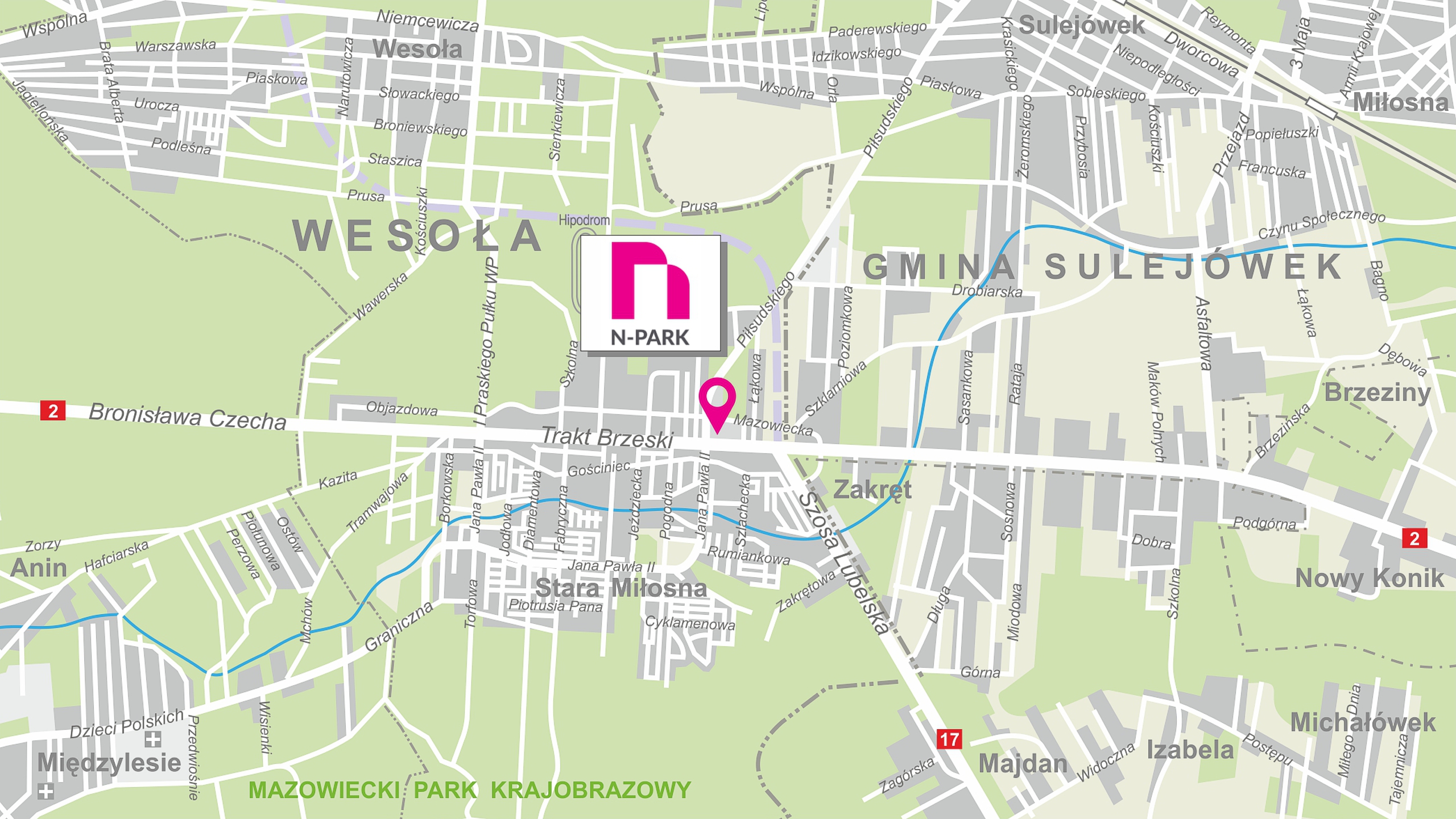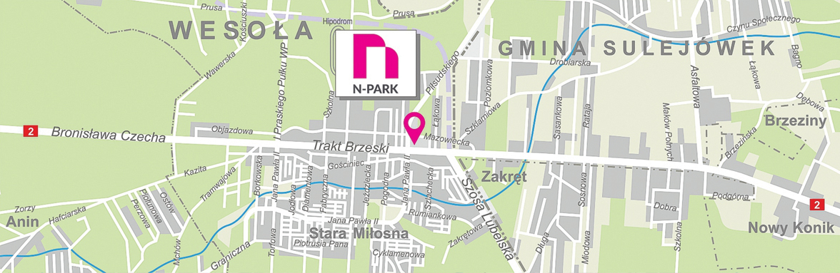N-Park przy ul. Trakt Brzeski to dwupiętrowy park handlowy typu convenience z parkingiem naziemnym. Powstał w Dzielnicy Wesoła m.st. Warszawy. Projekt jest doskonale skomunikowany z pobliskim Sulejówkiem oraz znajduje się tuż przy drodze krajowej nr 2 - trasa Warszawa - Terespol.